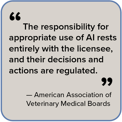 In an acknowledgment that AI technologies can't be ignored, two veterinary organizations put forth separate papers on the topic this year. One paper was by the American Association of Veterinary State Boards (AAVSB), the other by the VIC