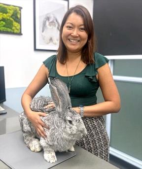 Exotics specialist Dr. Rina Maguire, shown with a rabbit patient, spent eight years practicing in Manhattan and Long Island before returning home to Singapore, where she cofounded a speciality and referral hospital with her husband, Dr. Patrick Maguire.