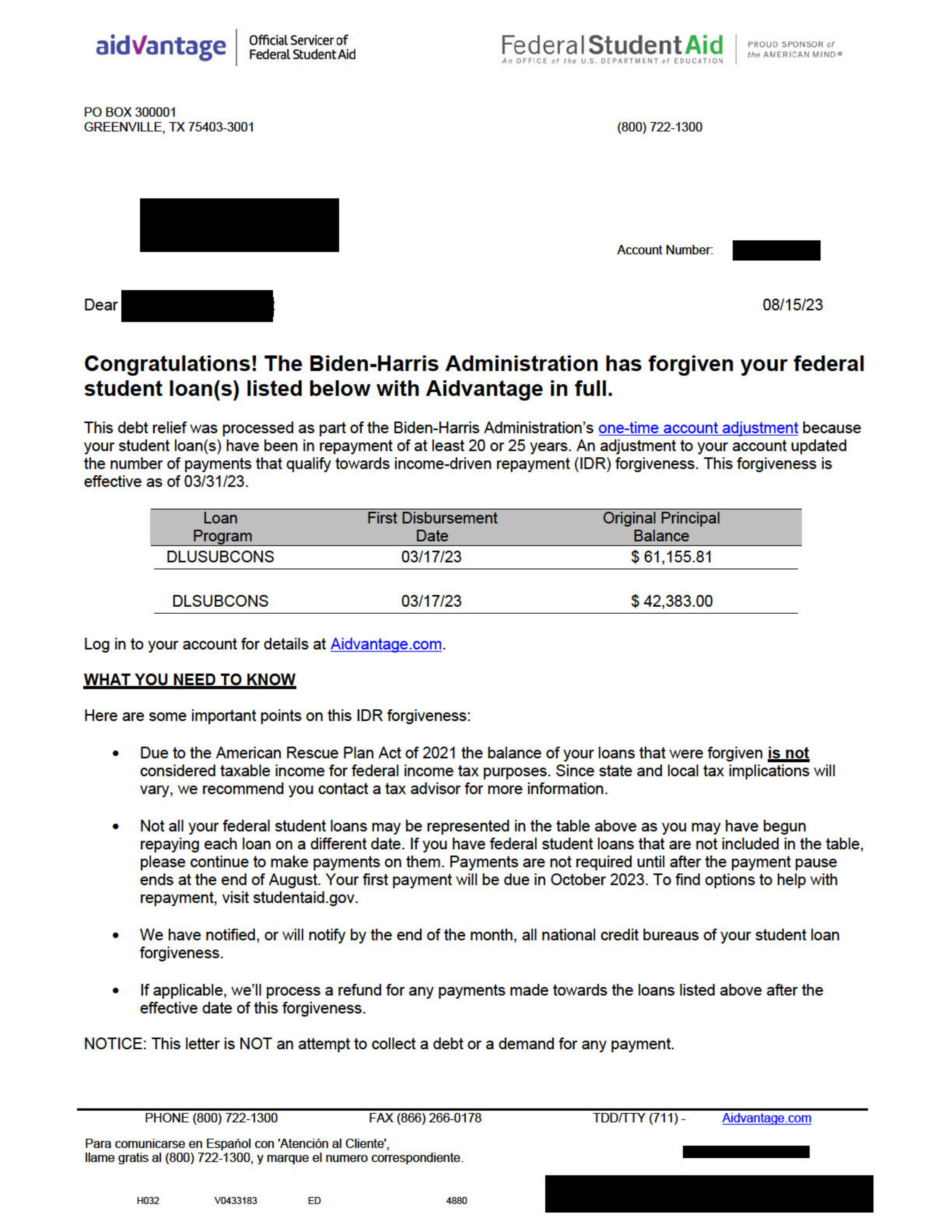 "Why would I joke about that?" she wondered, even though she could barely believe it herself. She showed him the email that reads, "Congratulations! The Biden-Harris Administration has forgiven your federal student loan(s) listed below ... in full."